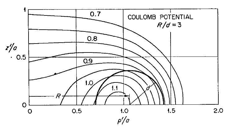 <math>~\cosh^{-1}\biggl(\frac{R}{d}\biggr) \, .</math> |