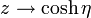 Next we adopt the associations, <math>~z \rightarrow \cosh\eta</math>, <math>~t \rightarrow \theta</math>, <math>~\mu \rightarrow 2</math>, and, <math>~\nu \rightarrow n - \tfrac{1}{2}</math>, where <math>~n</math> is zero or a positive integer. In this case we have,