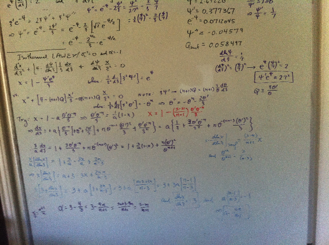 Hence, if <math>~\gamma = (n+1)/n</math>, then, <math>~\alpha = (3-4/\gamma) = (3-n)/(n+1)</math>, and the polytropic LAWE is satisfied. HOOOORAAAAY! (18 March 2017)