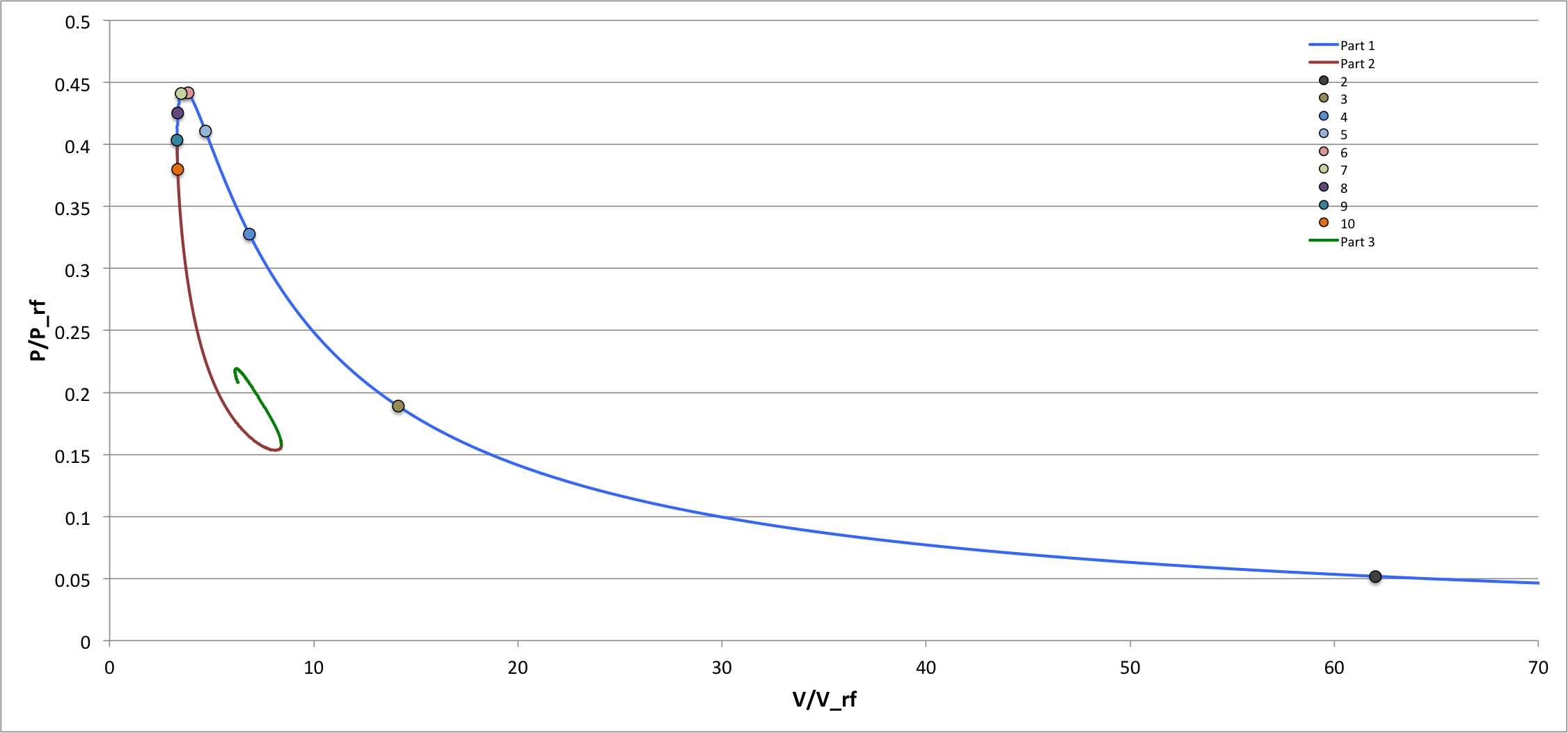 Bonnor's (1956) equilibrium sequence, but as generated from our numerical integration of the isothermal Lane-Emden equation; in our plot, we have adopted Whitworth's (1981) normalizations, <math>~P_\mathrm{rf}</math> and <math>~V_\mathrm{rf}</math>. |