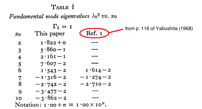 | Yabushita's (1968) Notation: | <math>~x</math> | <math>~\psi</math> | <math>~\mu</math> | <math>~M</math> | <math>~x_0</math> | <math>~p_0</math> |