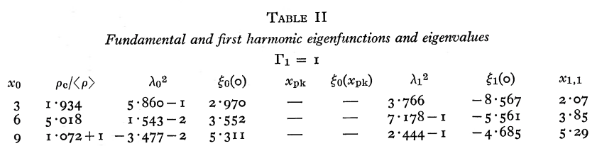 - L. G. Taff & H. M. Horn (1974, MNRAS, 168, 427-432) — Radial Pulsations of Finite Isothermal Gas Spheres