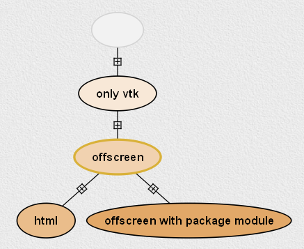 Consider the following example. The “offscreen.vt” vistrail (included in the “examples” directory) has a variety of output options, depending on which version you select in the History view (Figure The different versions of the “offscreen.vt” vistrail offer various forms of output.). The version tagged only vtk displays its output as an interactive VTK rendering. The version tagged html creates a simple web page in the Spreadsheet. The offscreen version, however, outputs an image file named “image.png”. Since its output (a file) can be easily accessed outside of VisTrails, this version is an ideal candidate for running in batch mode. To try it, invoke VisTrails as shown, specifying both the name of the vistrail file and the desired version: