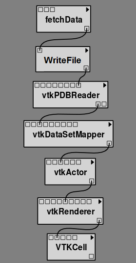 This example can be found inside the “examples” directory, in the protein_visualization.vt vistrail. It was partially based on the workflow “Structure_or_ID”, which can be found at http://www.myexperiment.org/workflows/225.