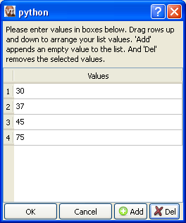 editor via the ‘...’ button. (See Figure Editors for lists of values for examples of the list editor and Python editor widgets.) As an alternative to the list editor,