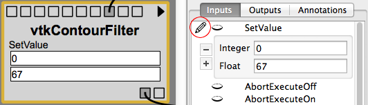 On some platforms (Such as Mac) some parameter widgets may look unsharp or pixelated. This is because no widget for that type has been created for use in the pipeline view, and the default one from the ‘Module Info’ pane has been used instead.
